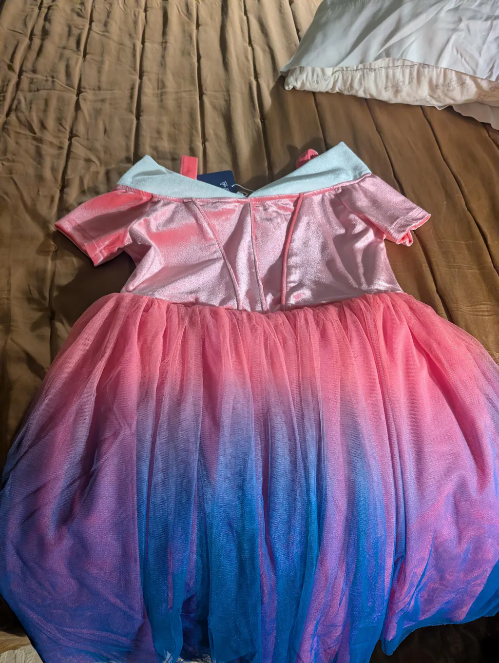 Embroidered Binding Details: Delicate embroidery outlines the bodice, adding texture and elegance that echo Aurora’s iconic gown.